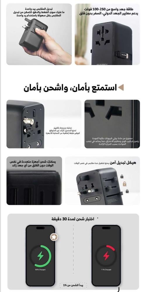 🚀 لا تدع فرصة الحصول على هذا المحول الذكي تفوتك! اجعل سفرك أكثر متعة وراحة، واطلب الآن محول السفر العالمي JEEBEL PD 65W واستعد للانطلاق!