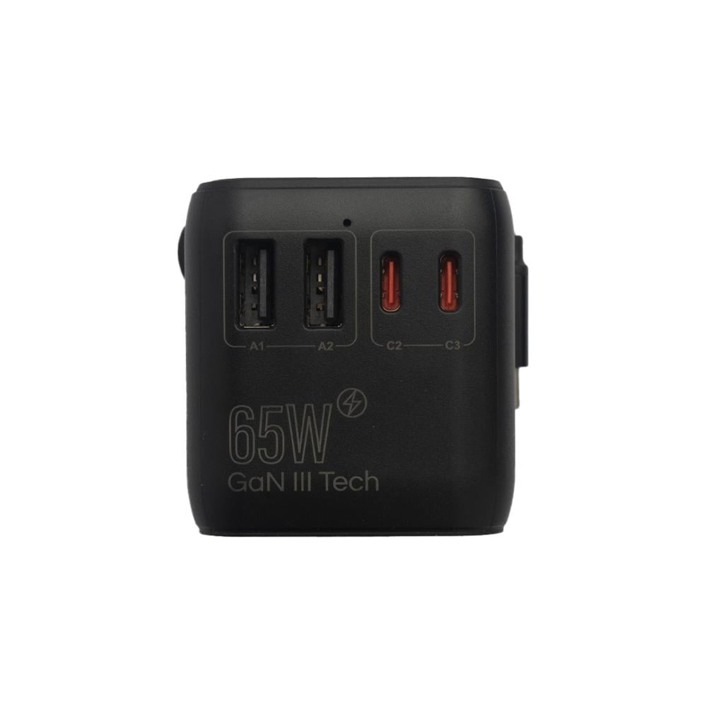 JEEBEL 65W Universal Travel Adapter with Built-in USB-C Cable - 2 USB-C + 2 USB-A Ports - جيبيل محول السفر العالمي 65 واط مع كابل USB-C مدمج - 2 منفذ USB-C + 2 منفذ USB-A